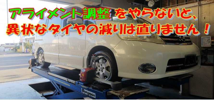 普段の運転をどんなに気を付けていても、年数が経過し、走行距離がかさむと タイヤの接地角度 は必ずズレてしまいます。
