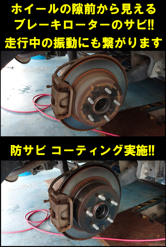 またブレーキ周りのサビは見た目だけでなく、走行中の振動=音にも影響するってご存じでしたか?