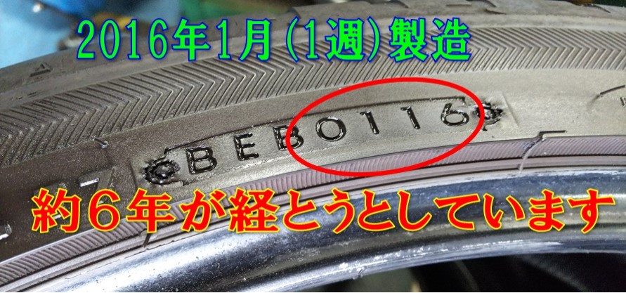 前回も当店でタイヤ交換をさせていただいていますが、もうすぐ6年が経とうとしている状態です。