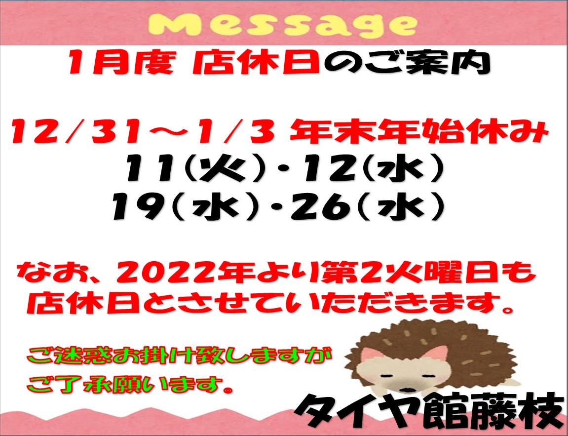 年末年始、1月の店休日のお知らせ