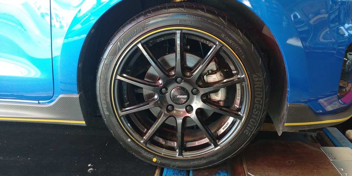 スイフト スポーツ(ZC33S)のお客様はタイヤ交換、ポテンザ アドレナリンRE004&アライメント調整♪