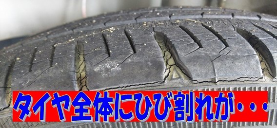 この様にタイヤ全体にひび割れを起こしている状態です。