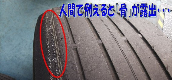 「 タイヤの減りが極端で片方はワイヤーらしきのが出ちゃってるんだけど・・・ 」