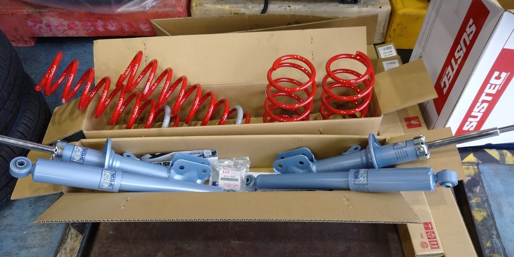 今回はUP210で車高を約3cmUP、カヤバ NEW SRスペシャルでダンピングをしっかりさせてロールやフワつきを押さえて、純正キャンバーボルトでさらにポジティブになってしまうキャンバーを補正しています。