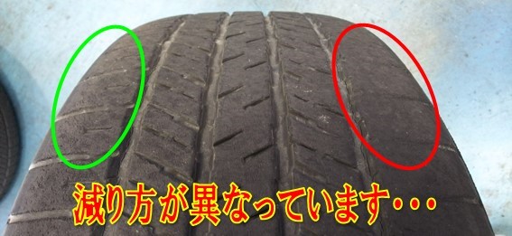 現在お使いのタイヤは、画像にもあります様に1本のタイヤでも減り方が異なっています。
