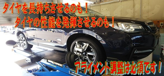 このままでは新しく交換させていただいたタイヤも使っていくに連れて減り方が異なってしまうので、アライメント調整 にてズレてしまっている 「 タイヤの接地角度 」を直します。