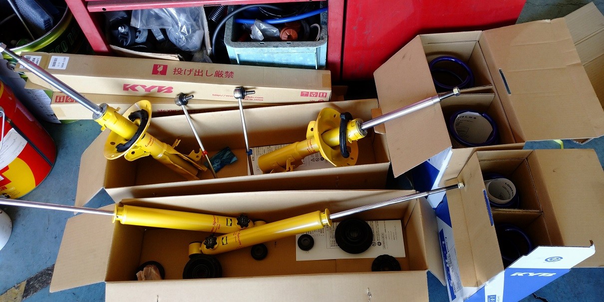 フィットRS(GK5)のお客様は少しのローダウンと足廻りのリフレッシュとハンドリングをシャキッとさせたい!!と言うご要望で、KYB ローファースポーツKITプラスをお取付け♪