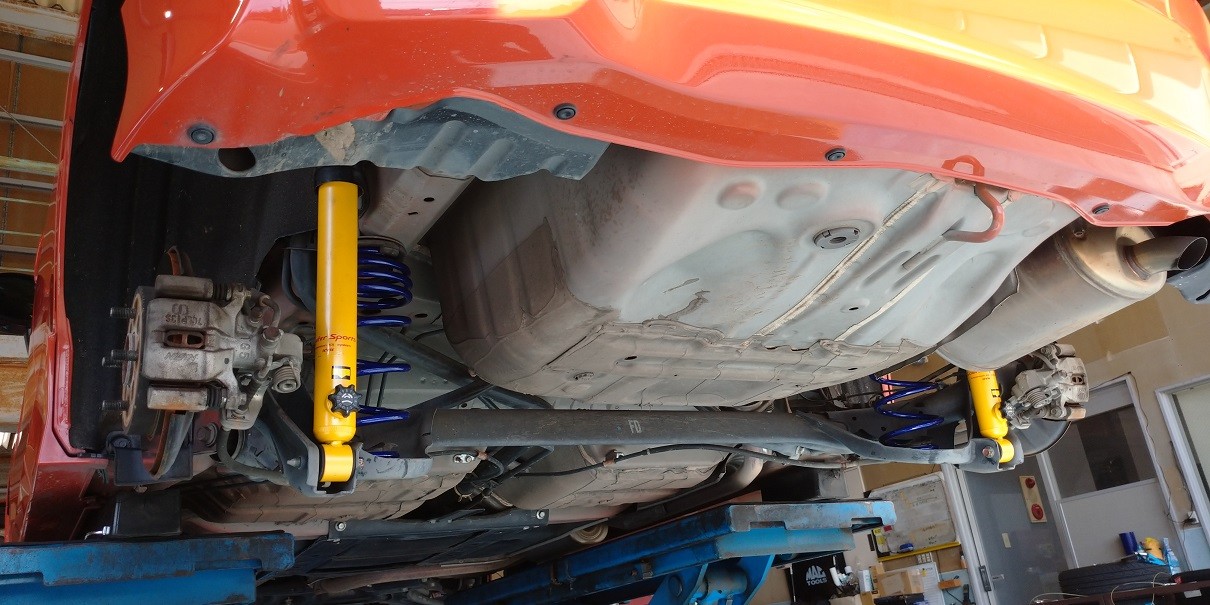 ローファースポーツキットプラスは約2cmのローダウンと少しのスプリングレートアップ、そしてリアは減衰力調整機能付きです♪