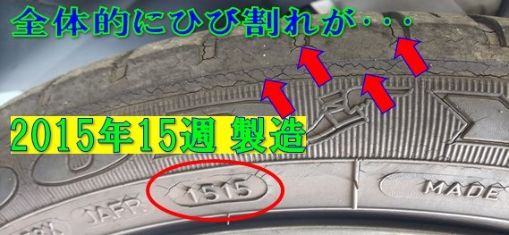 画像にもありますようにタイヤ全体がひび割れています!
