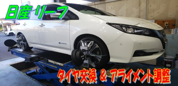 電気自動車 日産リーフ タイヤ交換 & アライメント調整 になります。