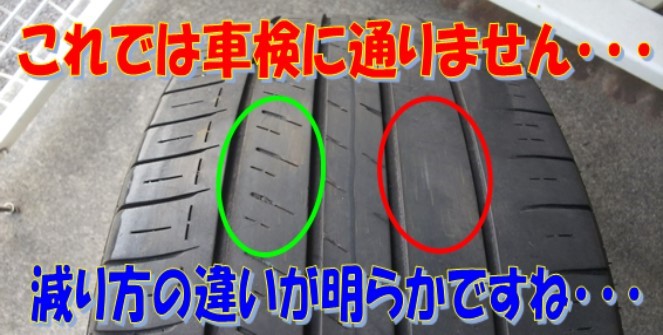 そして、タイヤがこの状態では ” 車検不適合 ” となり、交換しなくてはなりません。