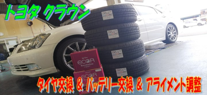 クラウン タイヤ交換 & アライメント調整 & バッテリー交換