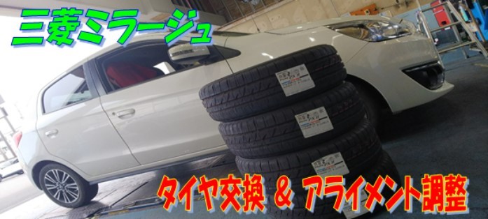 三菱 ミラージュ タイヤ交換 &アライメント調整