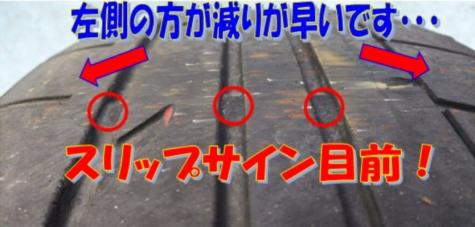 お客様から「 何度タイヤ交換しても左前(例えば)のタイヤばかり先に減ってしまう!」