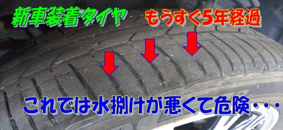 タイヤの外側になる部分の減り方が著しく目立ち、これから迎える梅雨時に安心してお乗りいただけるには難しいくらいの状態でした。