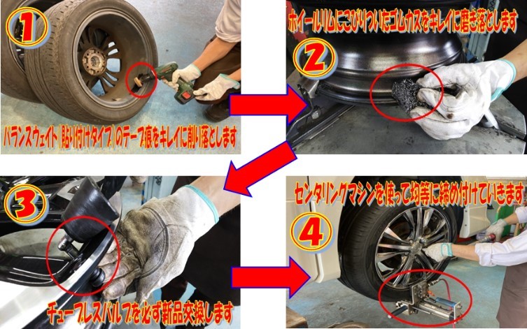 新しいタイヤを組み上げ、ホイールバランスをとったら