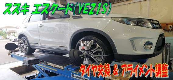 仕上げは、これまで使用されていたタイヤが左右で明らかな減り方の違いが見受けられたので、アライメント調整 で ” タイヤの接地角度をリセット ”