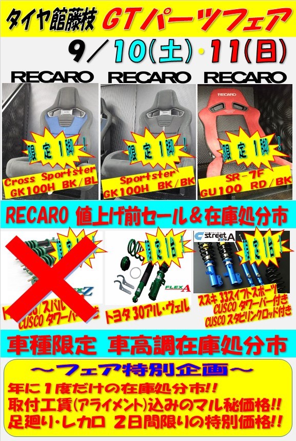 タイヤ館藤枝 GTパーツフェア開催のお知らせ