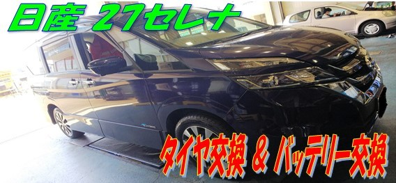日産 27セレナ タイヤ交換 & アライメント調整 & バッテリー交換