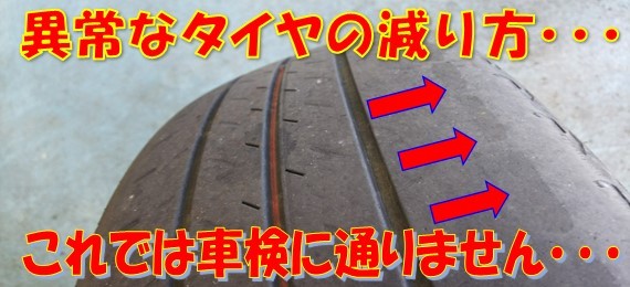 タイヤの減り方がおかしかったり、運転していてハンドルをとられたりする症状は