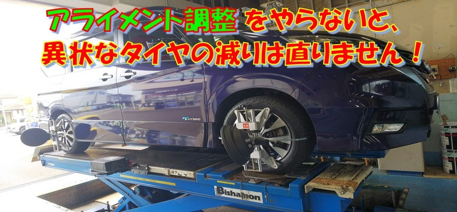 このような症状がある場合、アライメント調整 でタイヤの接地角度をリセット