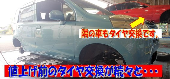 9月1日~ タイヤ値上げ を控えてる中、日に日にタイヤ交換を希望される方の来店が増えています。