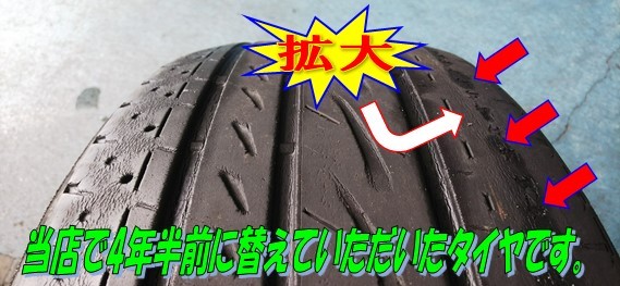 4年半使っていただいたタイヤの状態は、