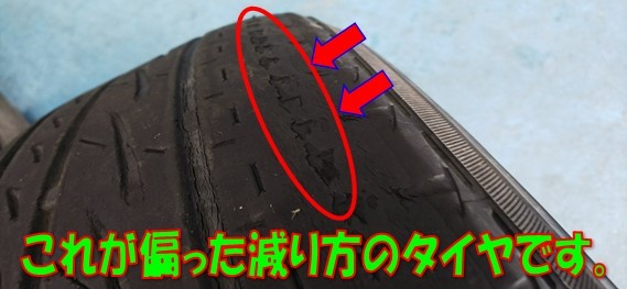このままタイヤ交換をしただけでは、新しく交換したタイヤもまた 偏った減り方 をしてしまいます。