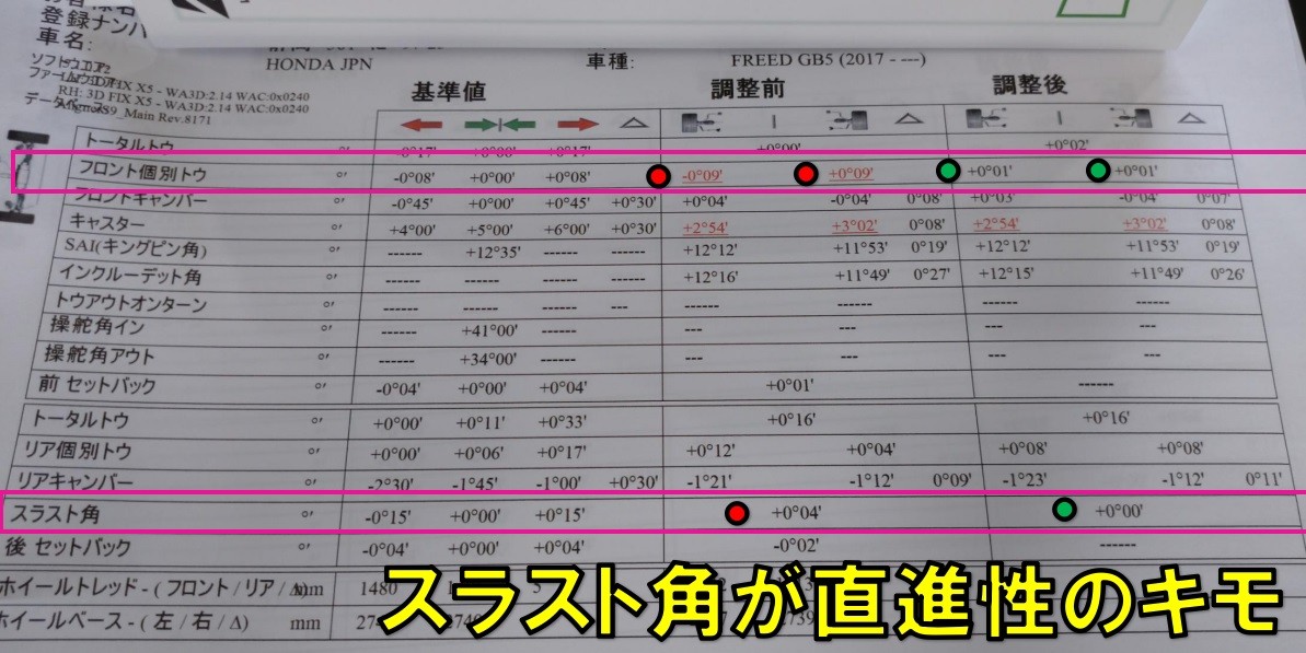 さらに、直進性改善とわずかなハンドルセンターのズレ改善の為にアライメント調整も実施致しました♪