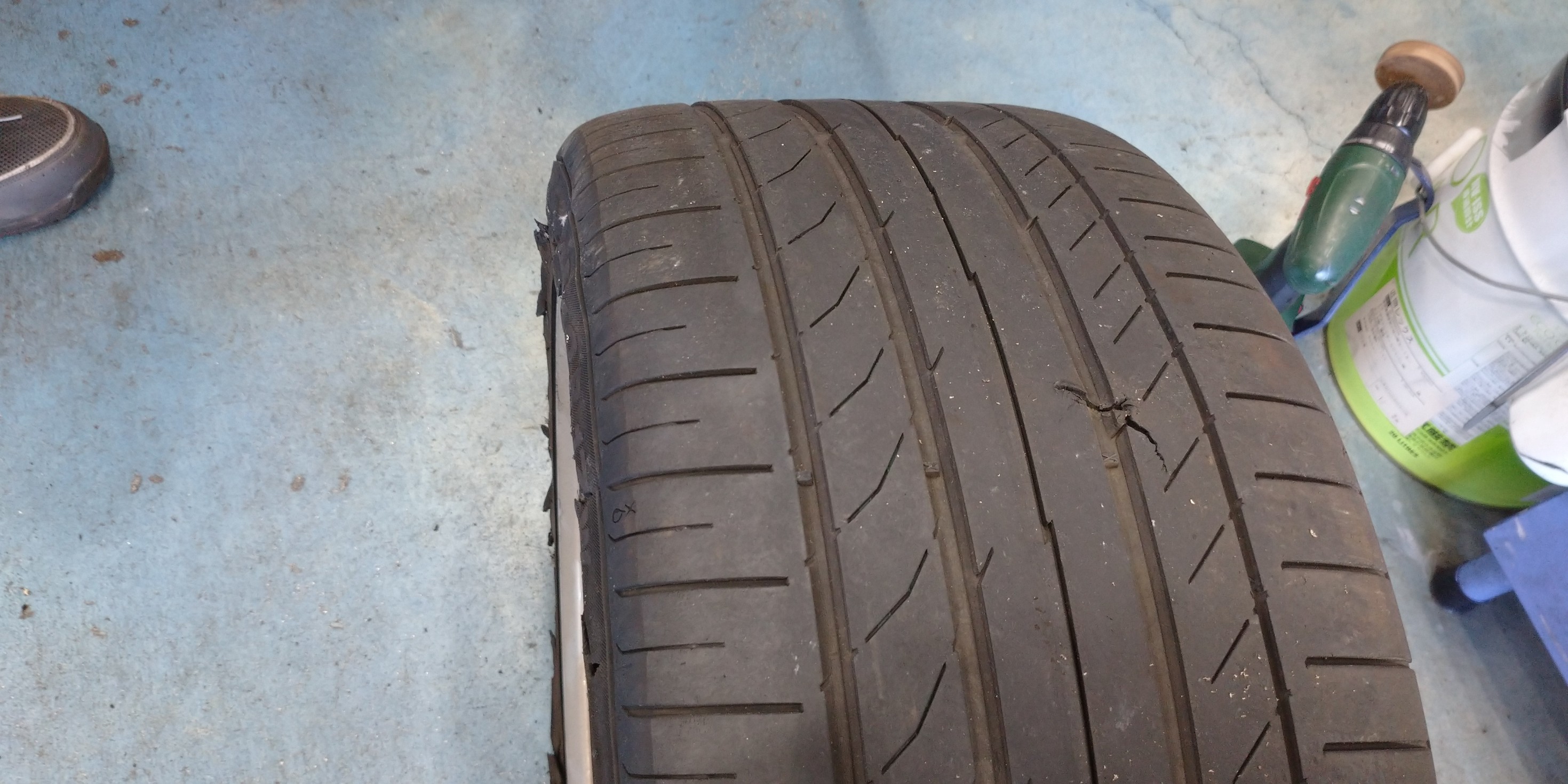 大雨の後の突然のパンク、何か大きな鋭いものが落ちていたようです…