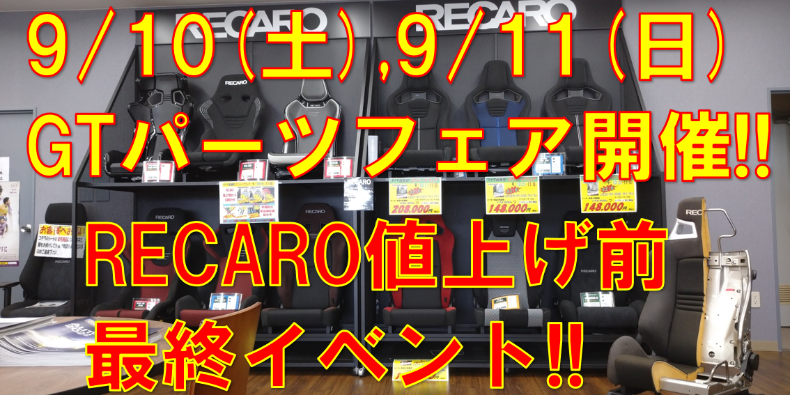 9/10(土)、9/11(日)GTパーツフェア開催中!! レカロ値上げ直前