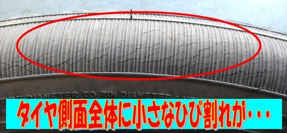 走行距離は少ないけど、タイヤの側面のひび割れをガソリンスタンドで指摘されてのご来店です。