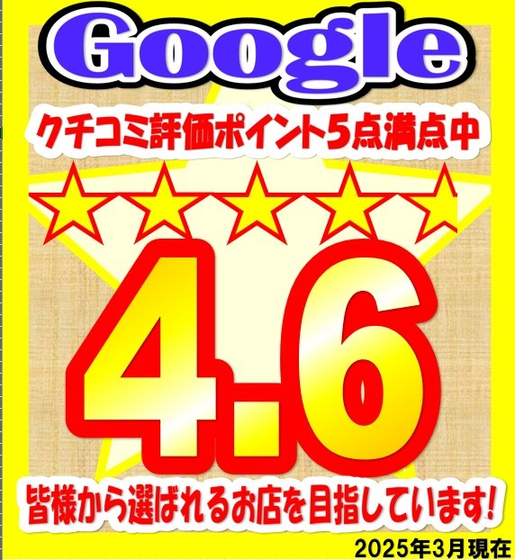 当店はより多くのお客様から選ばれるお店を目指します! ポスト 2025年3月31日 タイヤ館藤枝店はお陰様で クチコミ評価は 4.6点! お客様からの「ありがとう」が仕事の励み。 これからも変わらぬご愛顧のほど 宜しくお願い申し上げます。 ご来店いただいたすべてのお客様に これまで以上にご満足いただけるように頑張ります! タイヤ館 藤枝 住所:426-0033静岡県藤枝市小石川町2丁目15-35 電話番号: 054-644-2445 相談予約