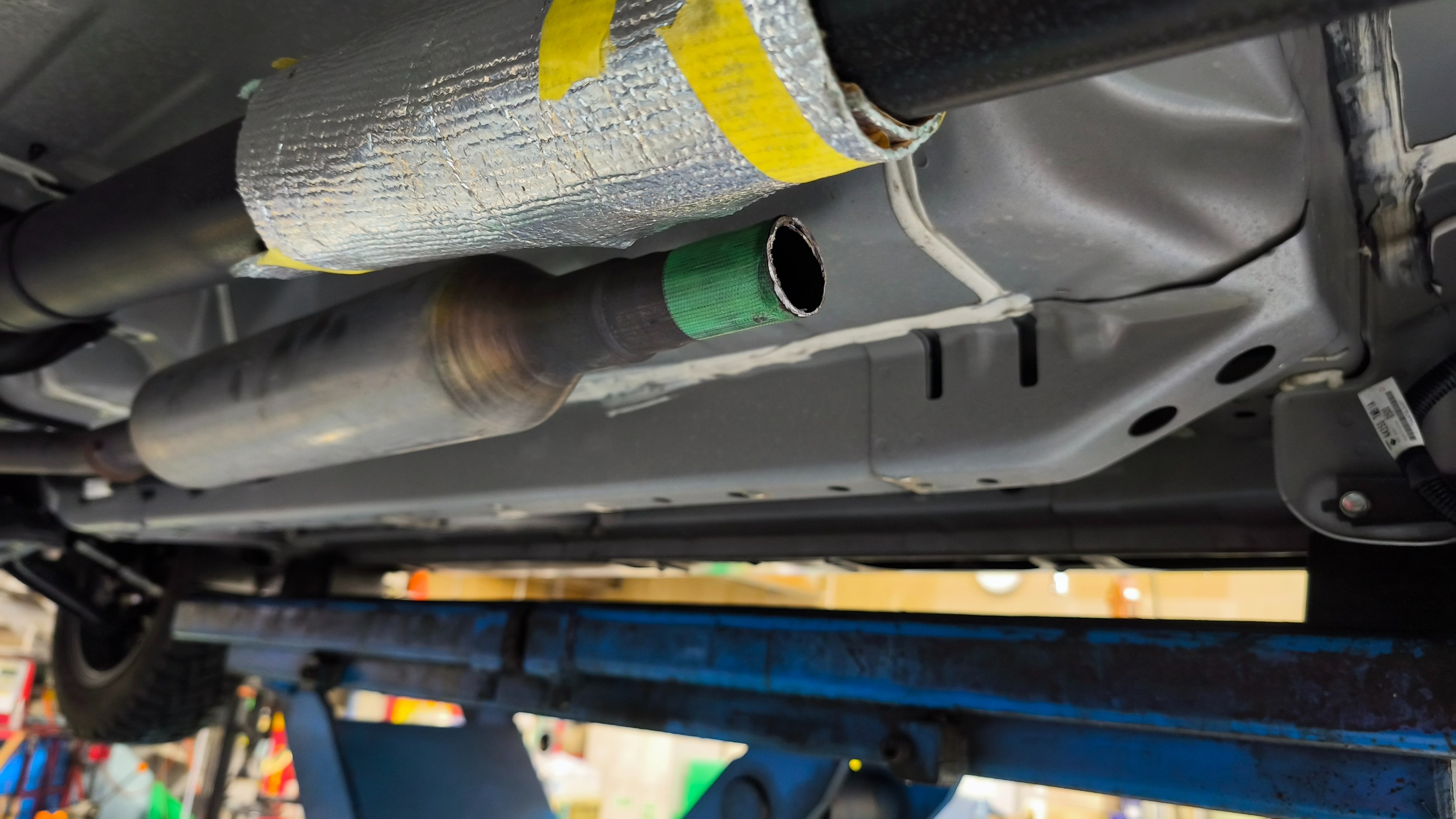 今回のマフラーは、実は純正マフラーの切断が必要。