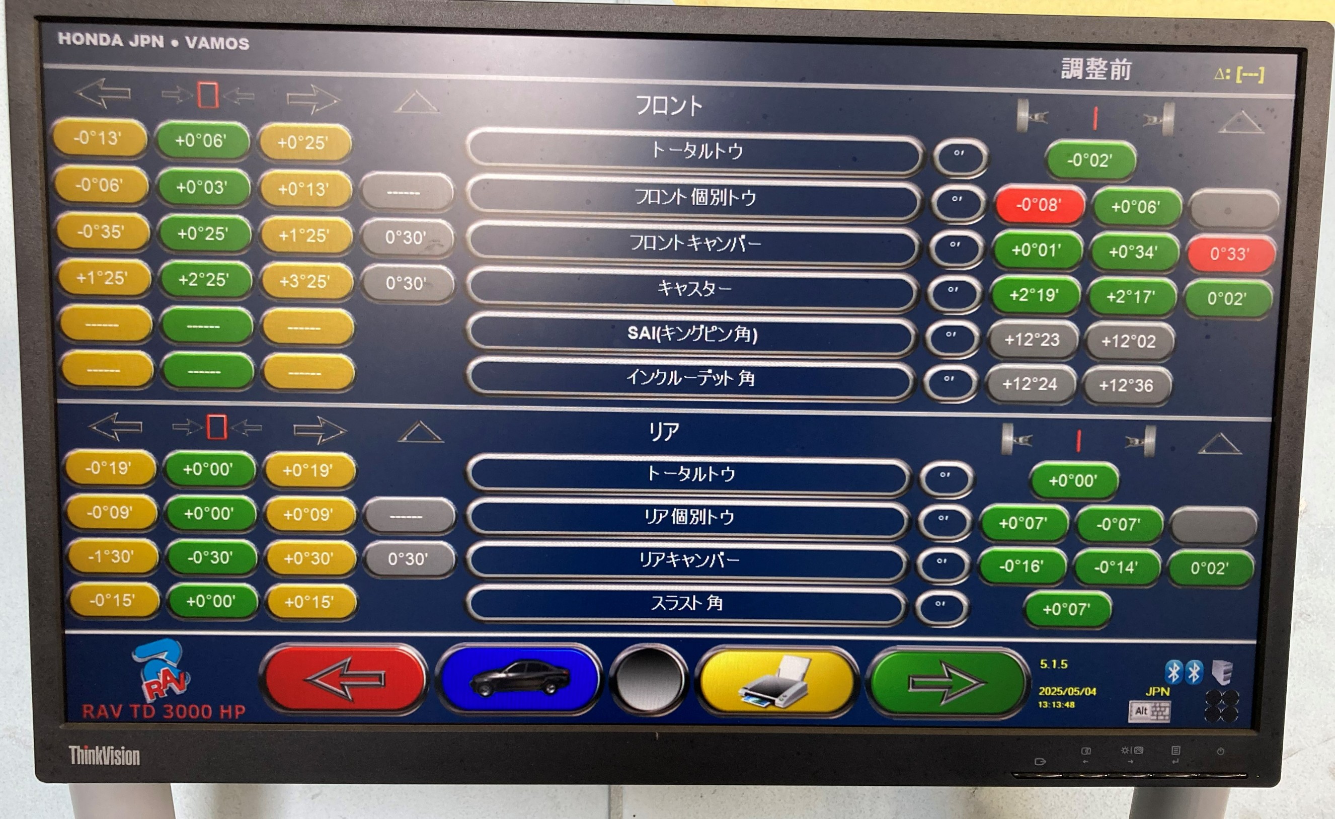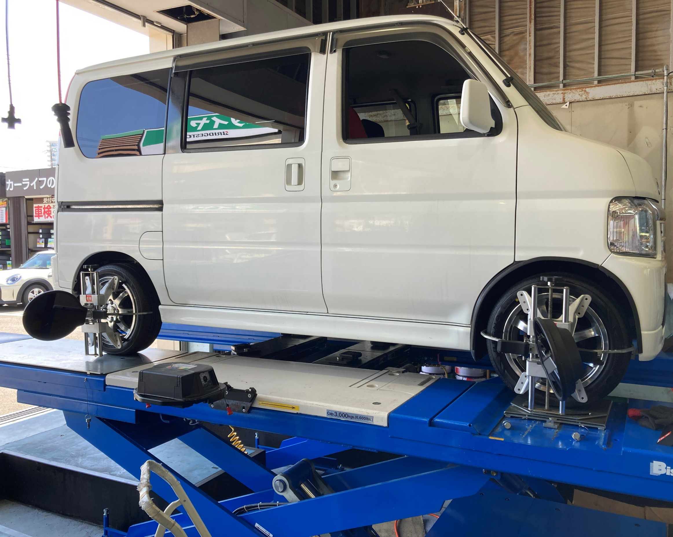 ホンダ バモス のアライメント調整作業のご紹介です!