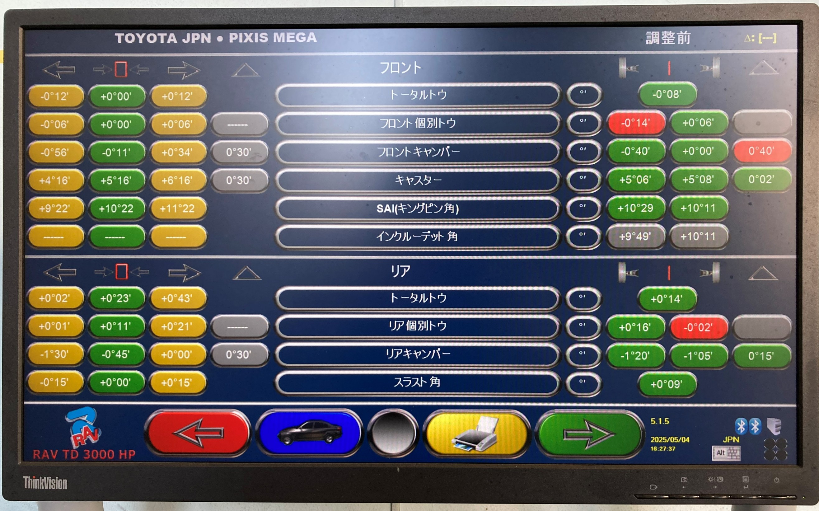 その後、ステアリングを真ん中に固定して測定完了です。