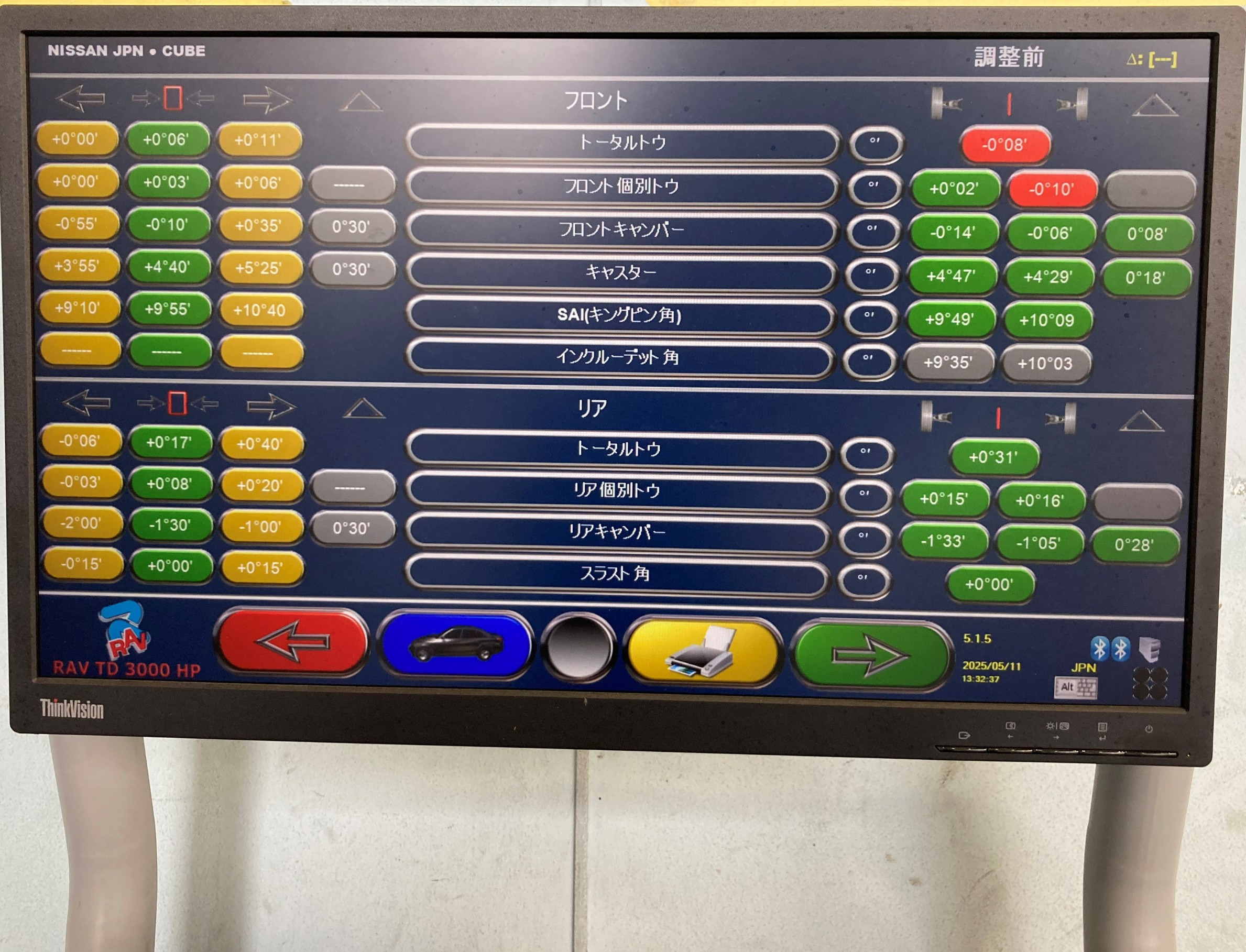 ニッサン キューブ アライメント調整させていただきました(^^)/
