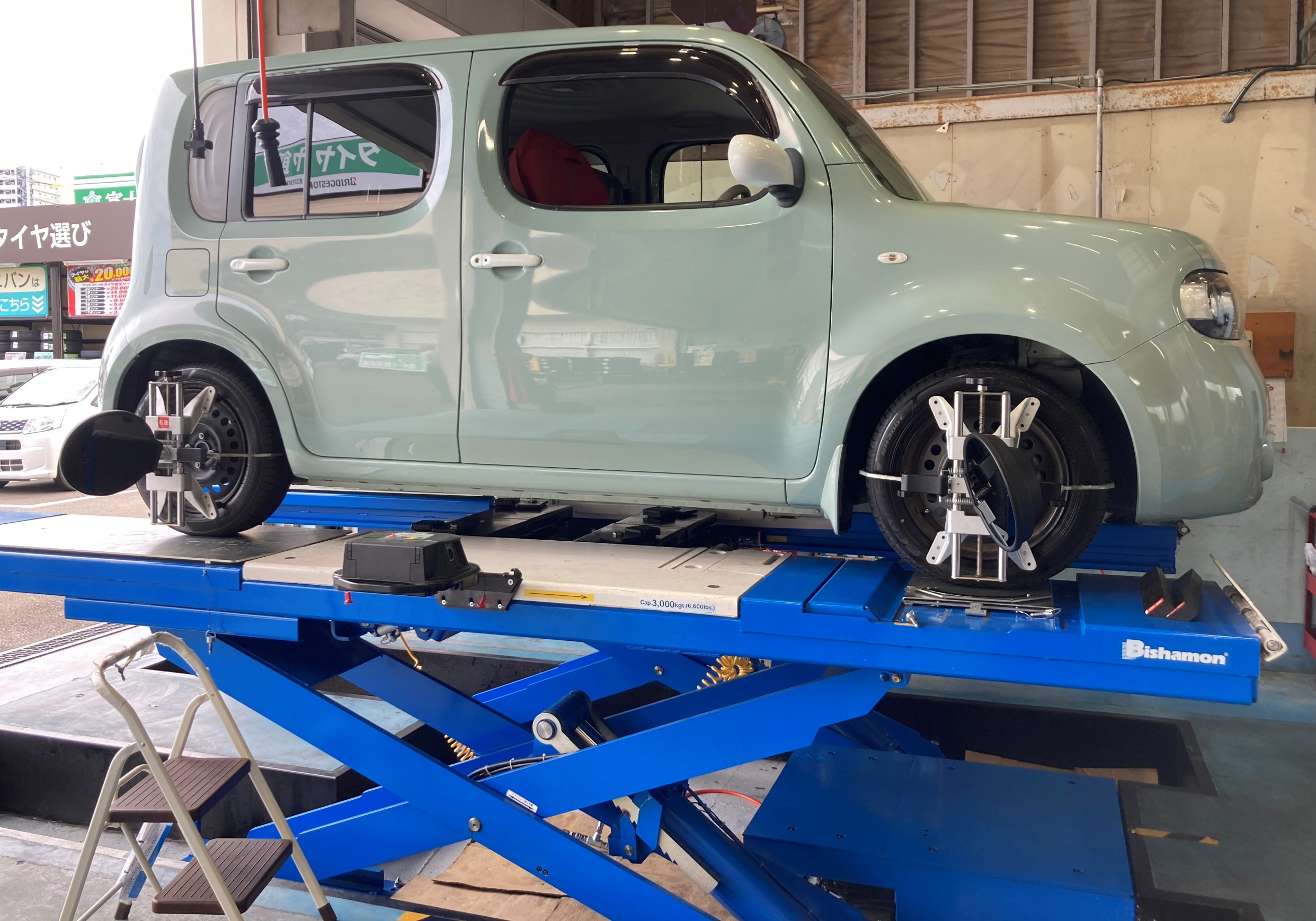 ニッサン キューブ のアライメント調整作業のご紹介です!