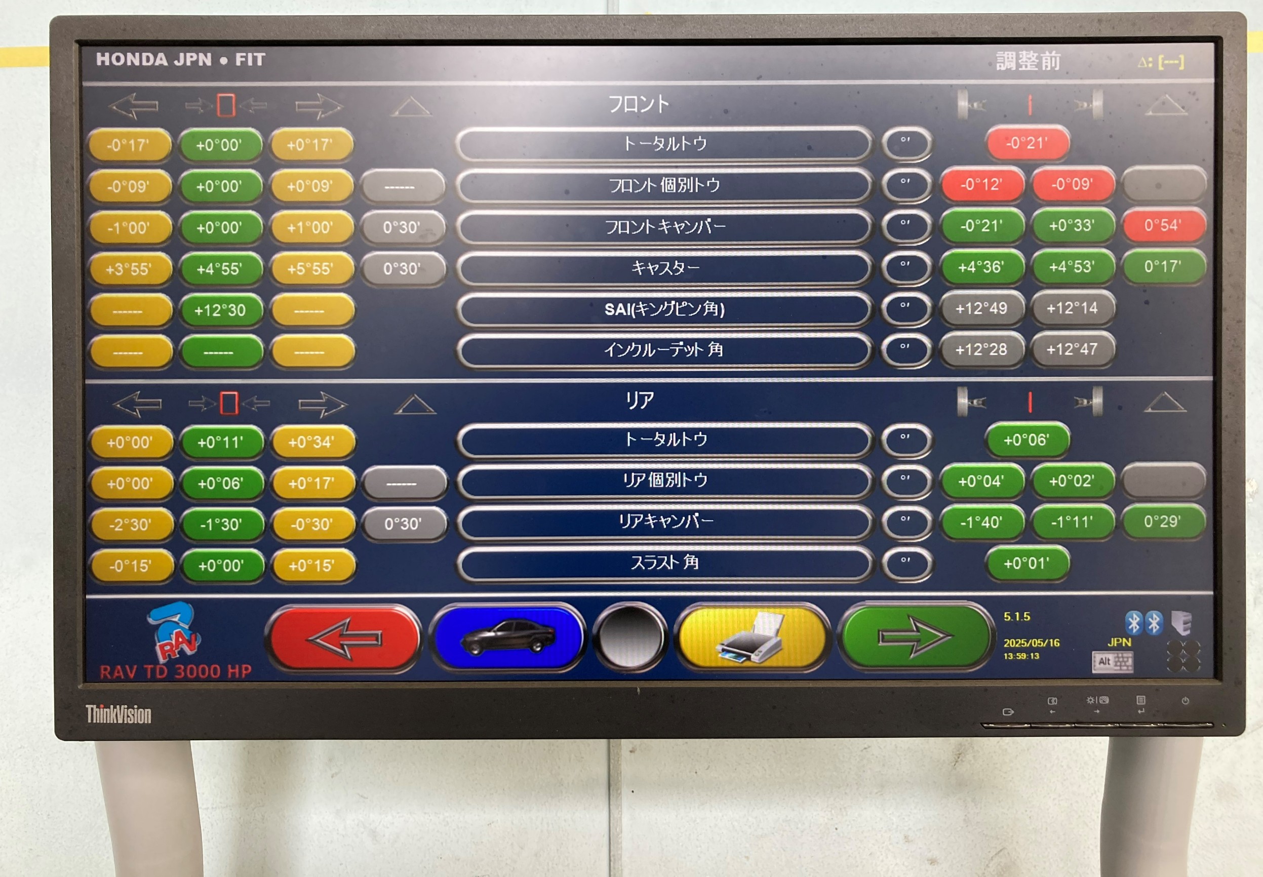 ホンダ フィット のアライメント調整させていただきました(^^)/!