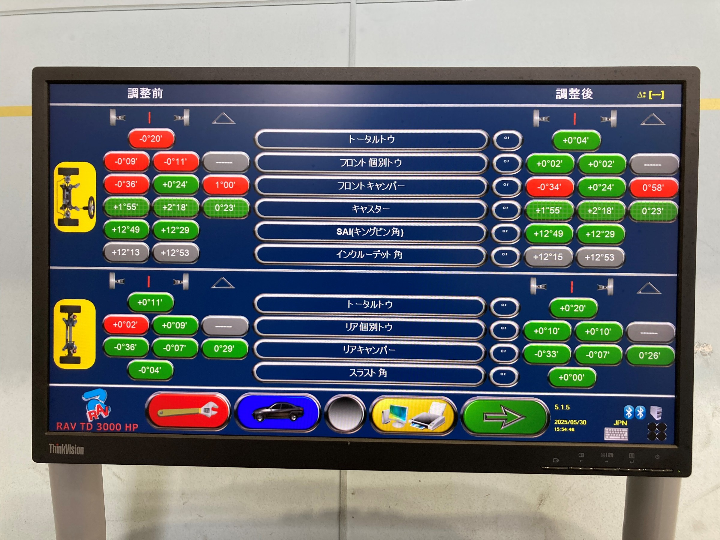 その後、ステアリングを真ん中に固定して測定完了です。