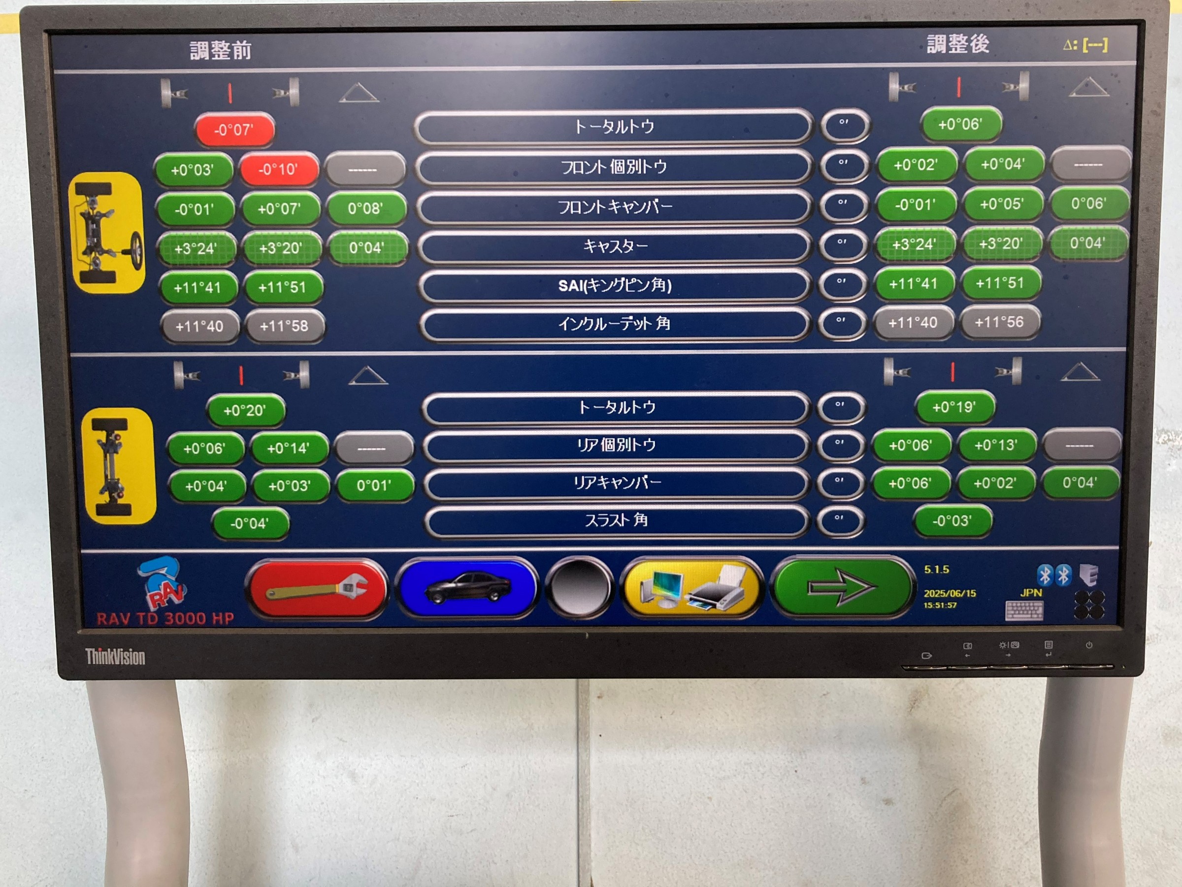 その後、ステアリングを真ん中に固定して測定完了です。