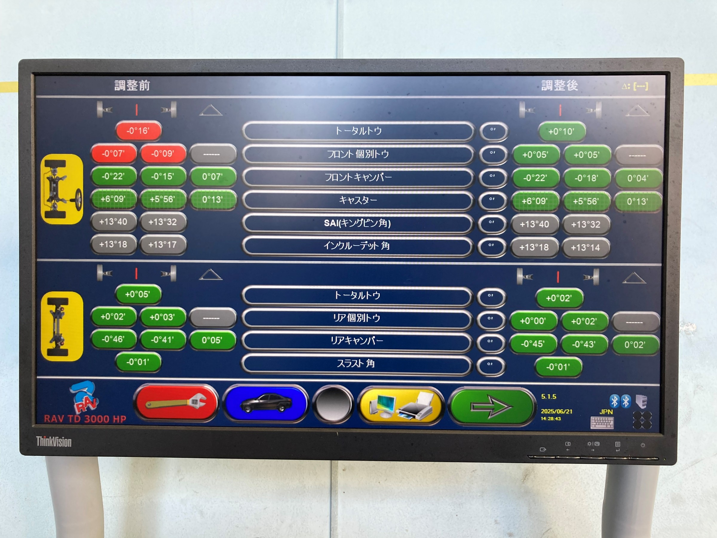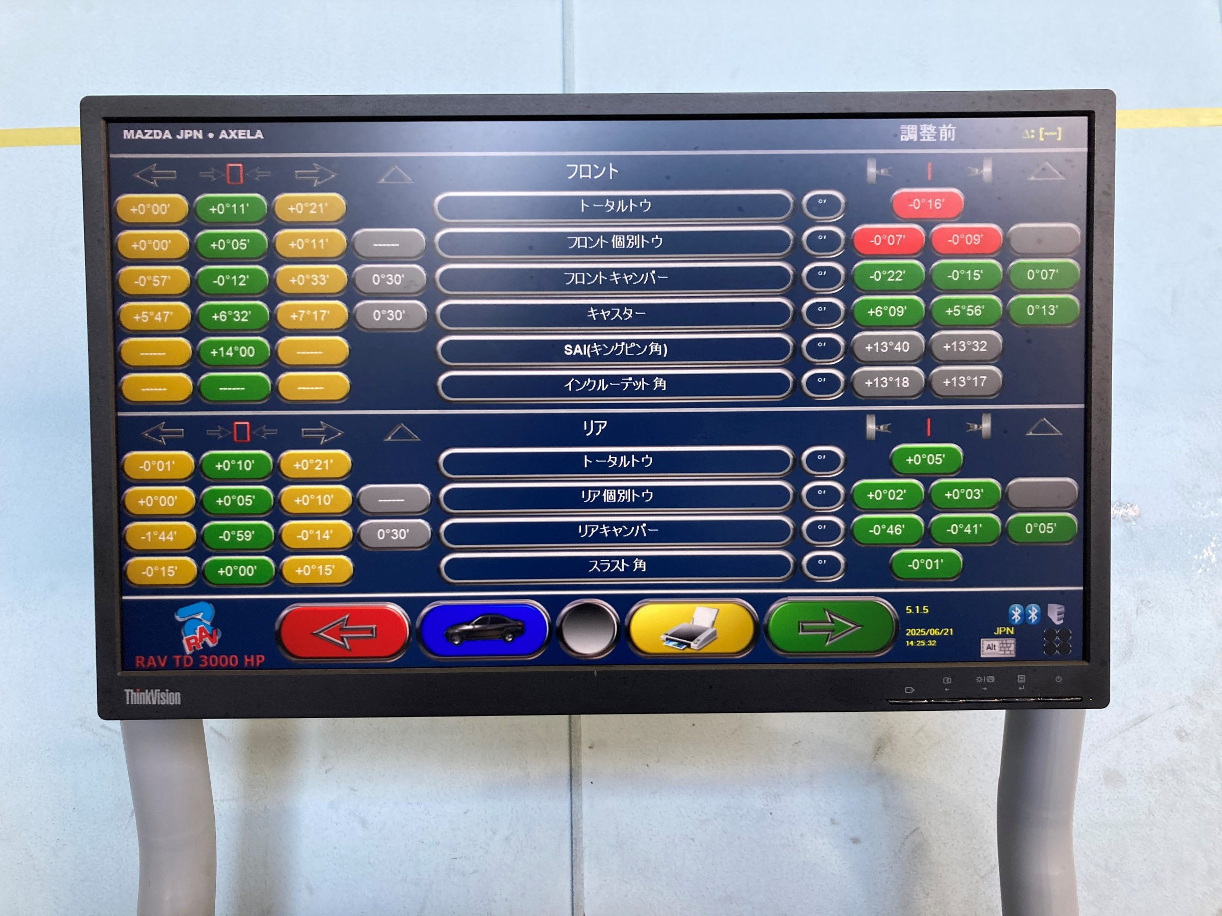 その後、ステアリングを真ん中に固定して測定完了です。