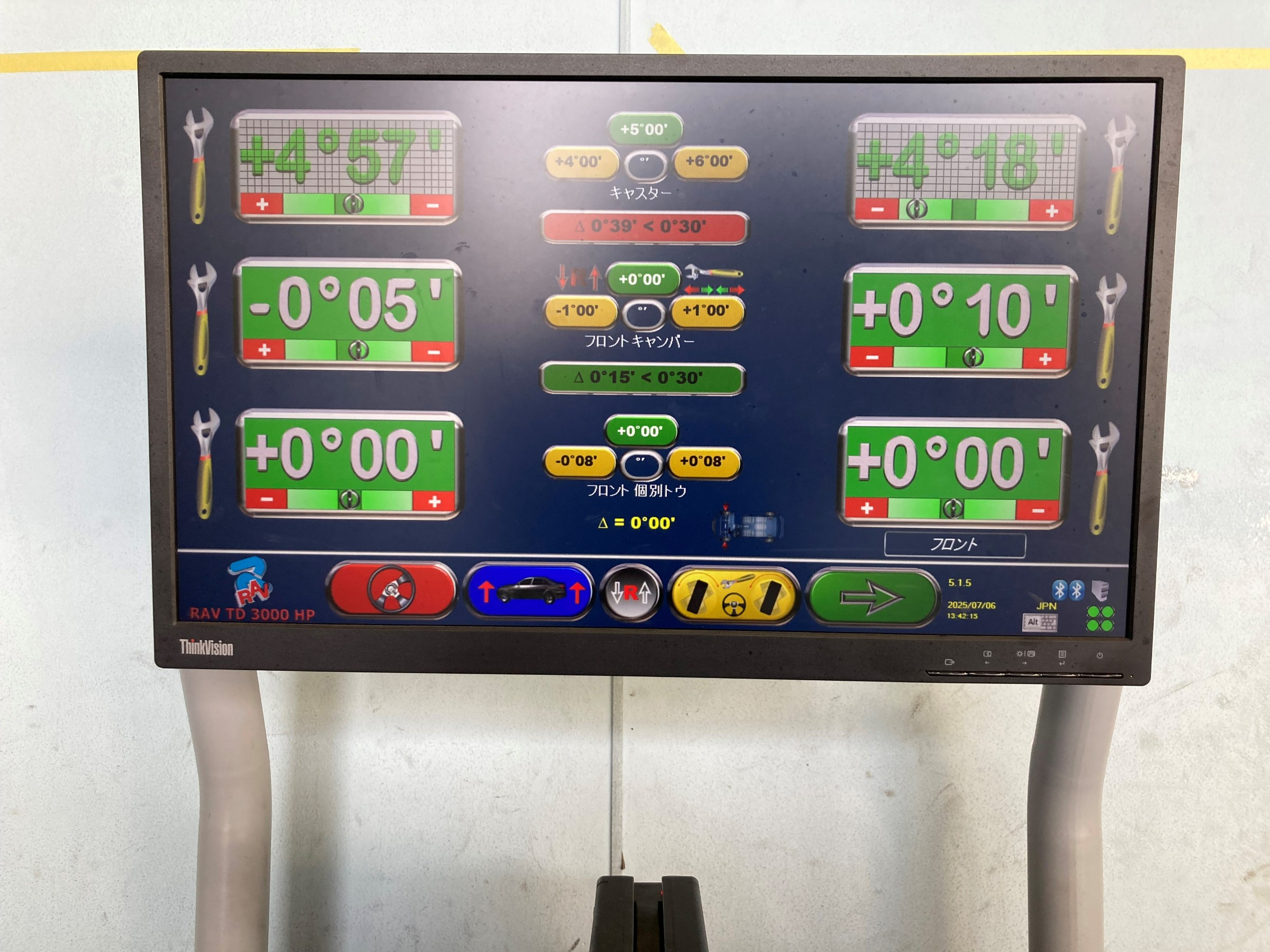 その後、ステアリングを真ん中に固定して測定完了です。