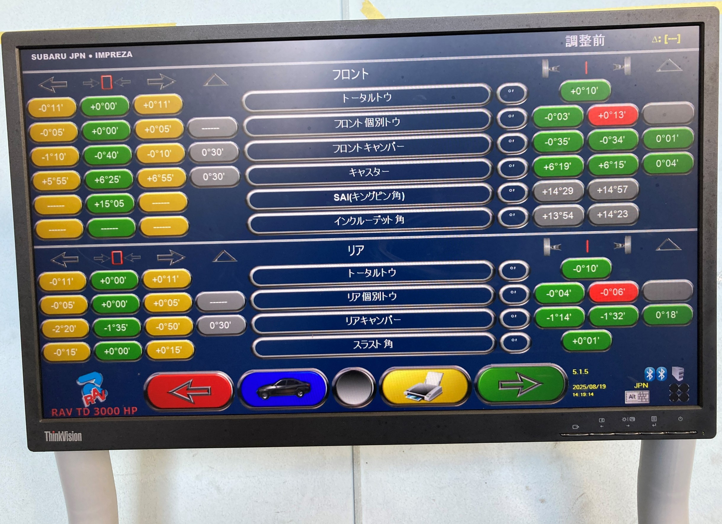 その後、ステアリングを真ん中に固定して測定完了です。
