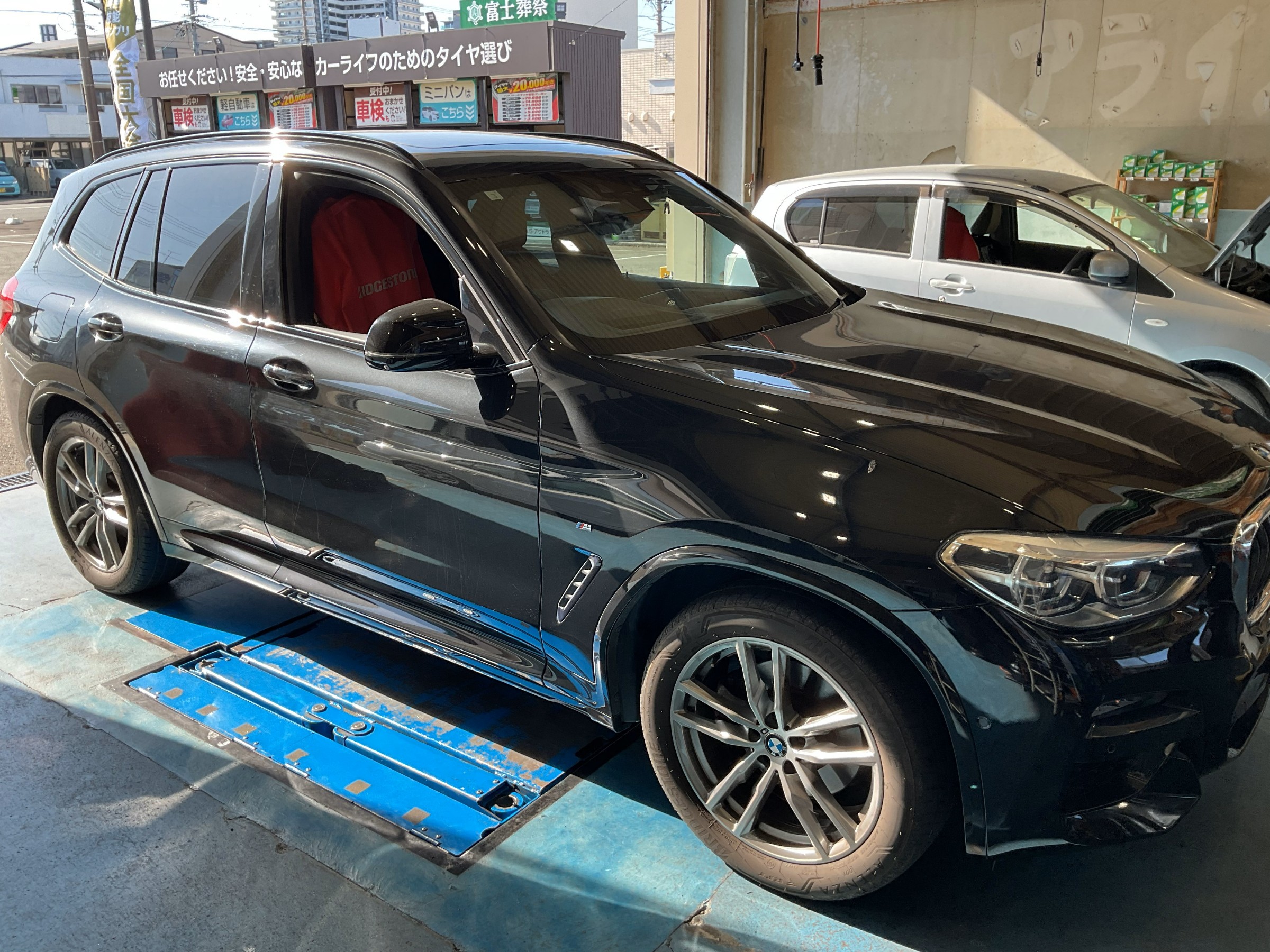 BMW X3 のタイヤ交換・アライメント調整作業のご紹介です!