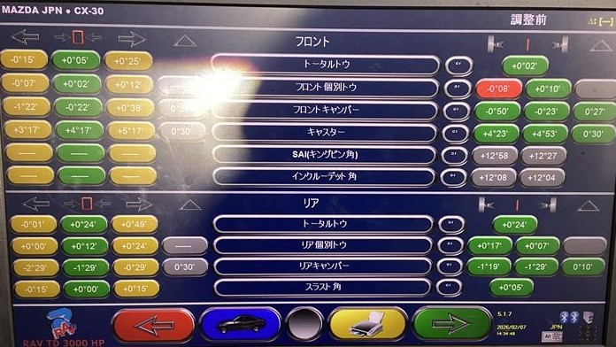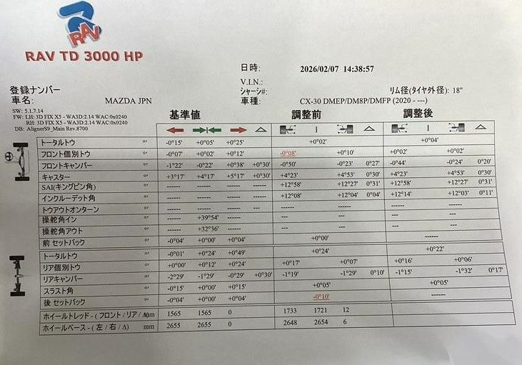 マツダ CX-30 の タイヤ交換・アライメント調整作業のご紹介です!