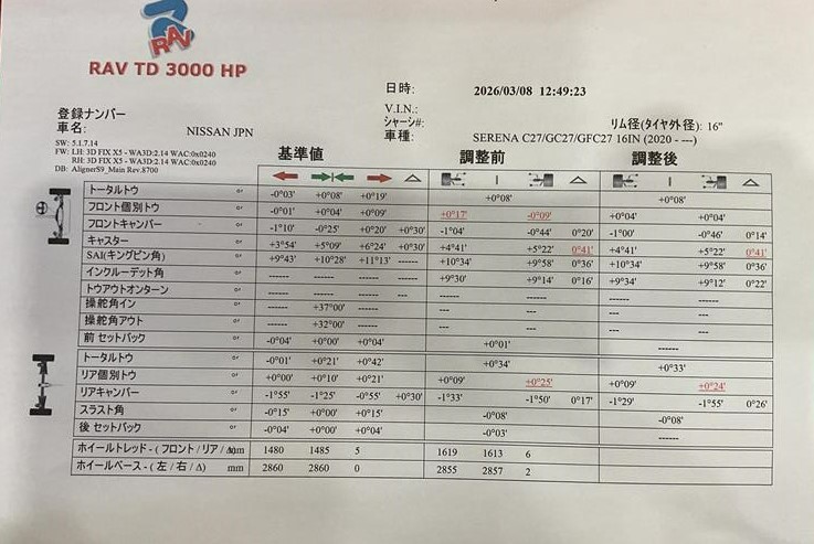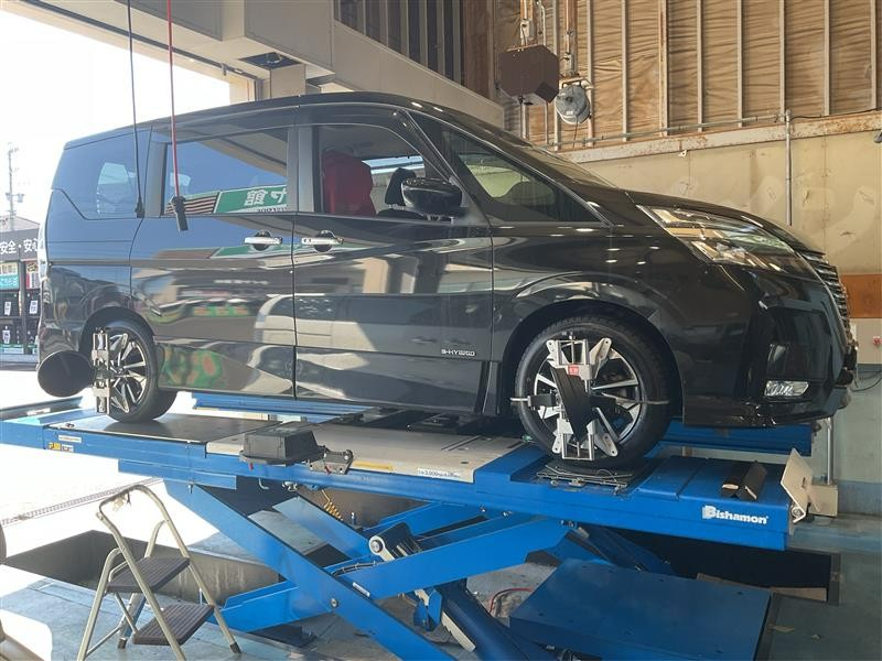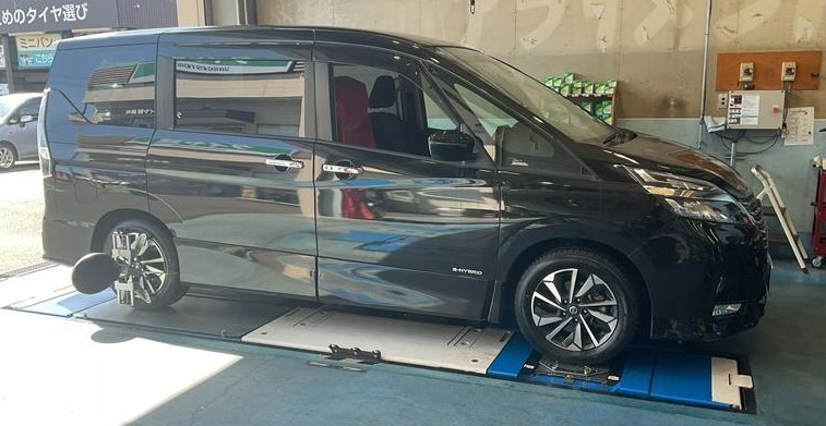 ニッサン セレナ の タイヤ交換・アライメント調整作業のご紹介です!