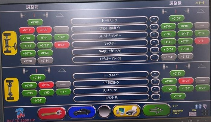 左右の角度がズレてます…(写真の左側の数値・調整値)