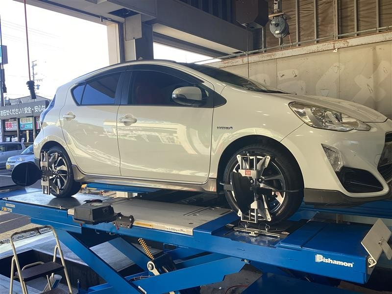 トヨタ アクア のタイヤ交換・アライメント調整作業させていただきました(^^)/