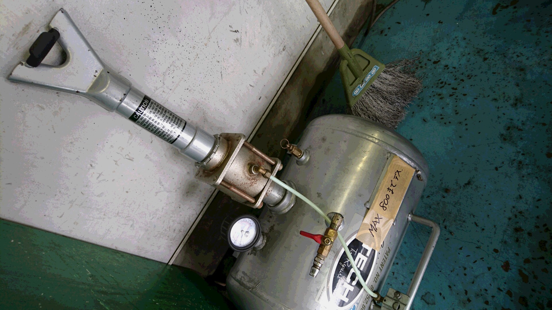 です。この機械はエアを出すときの反動が強いのでしっかりもっていないと体がもってかれます。